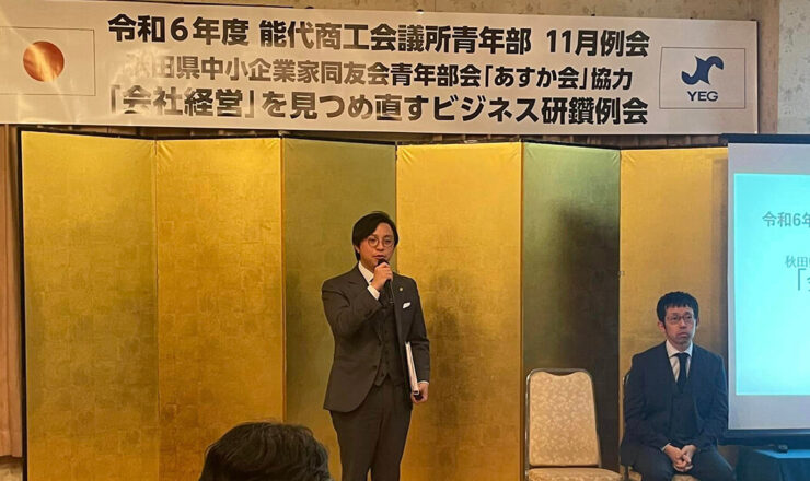 11月19日(火)、秋田県中小企業家同友会青年部会あすか会の池田様を講師としてお招きし、会社経営を見つめ直すビジネス研鑽例会と...